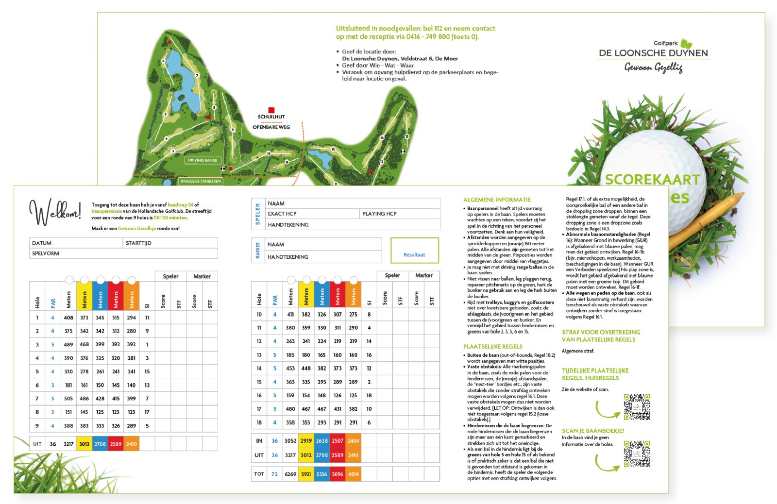 Op De Loonsche Duynen maken wij gebruik van de scorekaarten hieronder. Daarnaast is het mogelijk om jouw score in te voeren in de De Loonsche App. Klik hier voor meer informatie over de app.