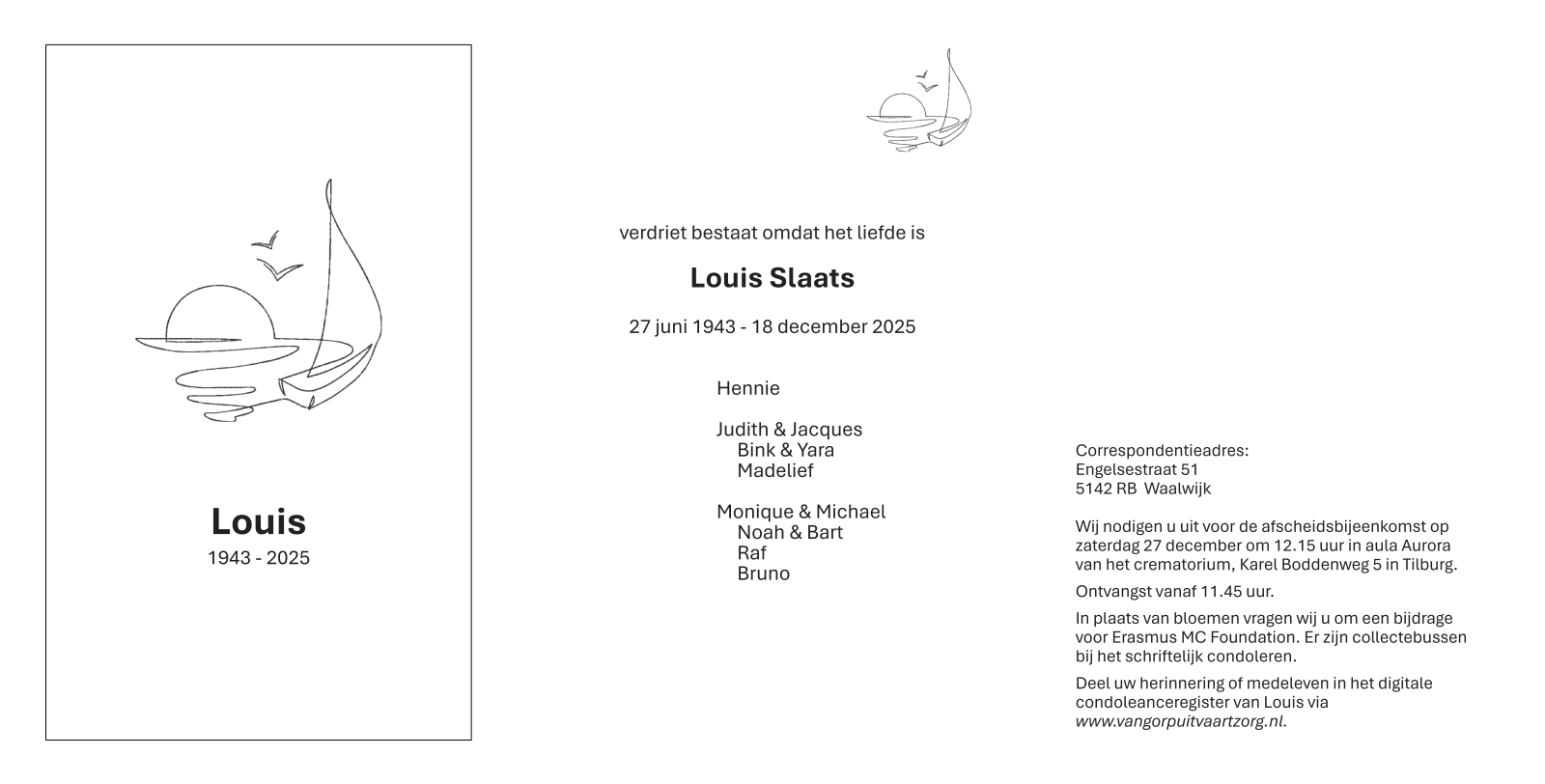 De rouwkaart en het In Memoriam door Fred Huijsmans treft u hieronder aan.