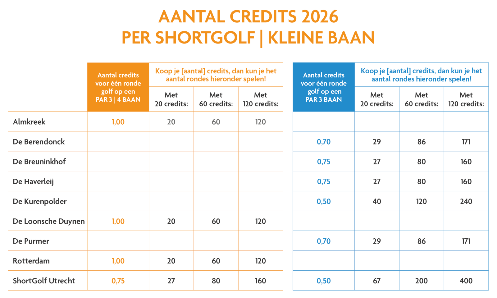 Credits ShortGolf speelrechten vanaf 1 november 2025